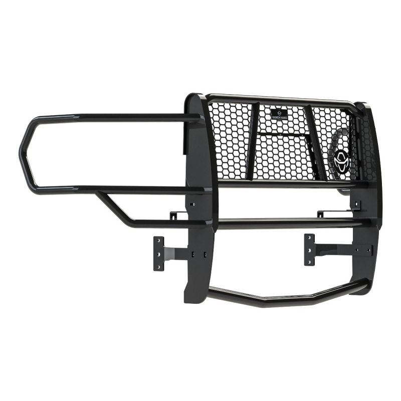 Built and fabricated with 12-gauge steel, the Legend grille guard meets the demand of both form and function. Originally referred to as the "Donkey Knocker" due to its solid strength and one-piece design, this grille guard is frame-mounted in four places to ensure a tight, secure fit while also reducing vibration for a smooth ride each time you hit the road. Ranch Hand has developed the Legend to fit a variety of trucks and SUVs, featuring custom punched grille inserts to match the truck manufacture’s grille pattern for a clean, coordinated appearance. To add to its unique style, it also features wraparound brush guards that give it a streamlined look while providing enhanced front-end coverage. The Legend grille guard is the perfect option for those looking to add extra protection and style to their vehicle without modifying their front bumper. This particular Legend grille guard fits select model years of the Ram 2500, 3500 (see application info to verify fitment). In 1986, in a small south Texas town, steel was fabricated, formed, and welded into a bumper for the first time. The bumper was created to serve the needs of local ranchers and farmers who were looking for a product that worked as hard as they did. Since then, Ranch Hand has remained as the original leader in both front and back protection.